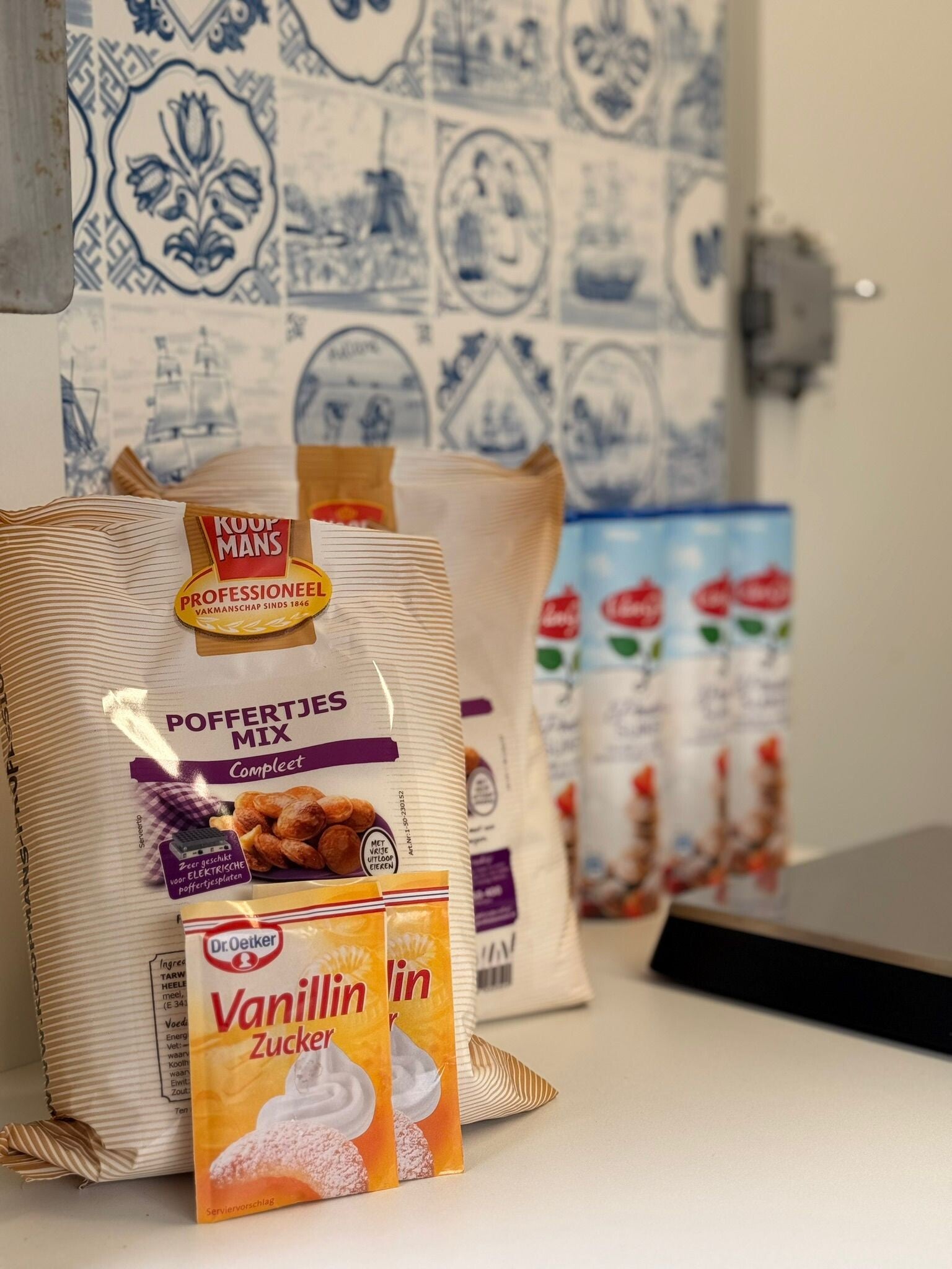 - U kunt bij ons ook de poffertjesmix en alle toebehoren bestellen.